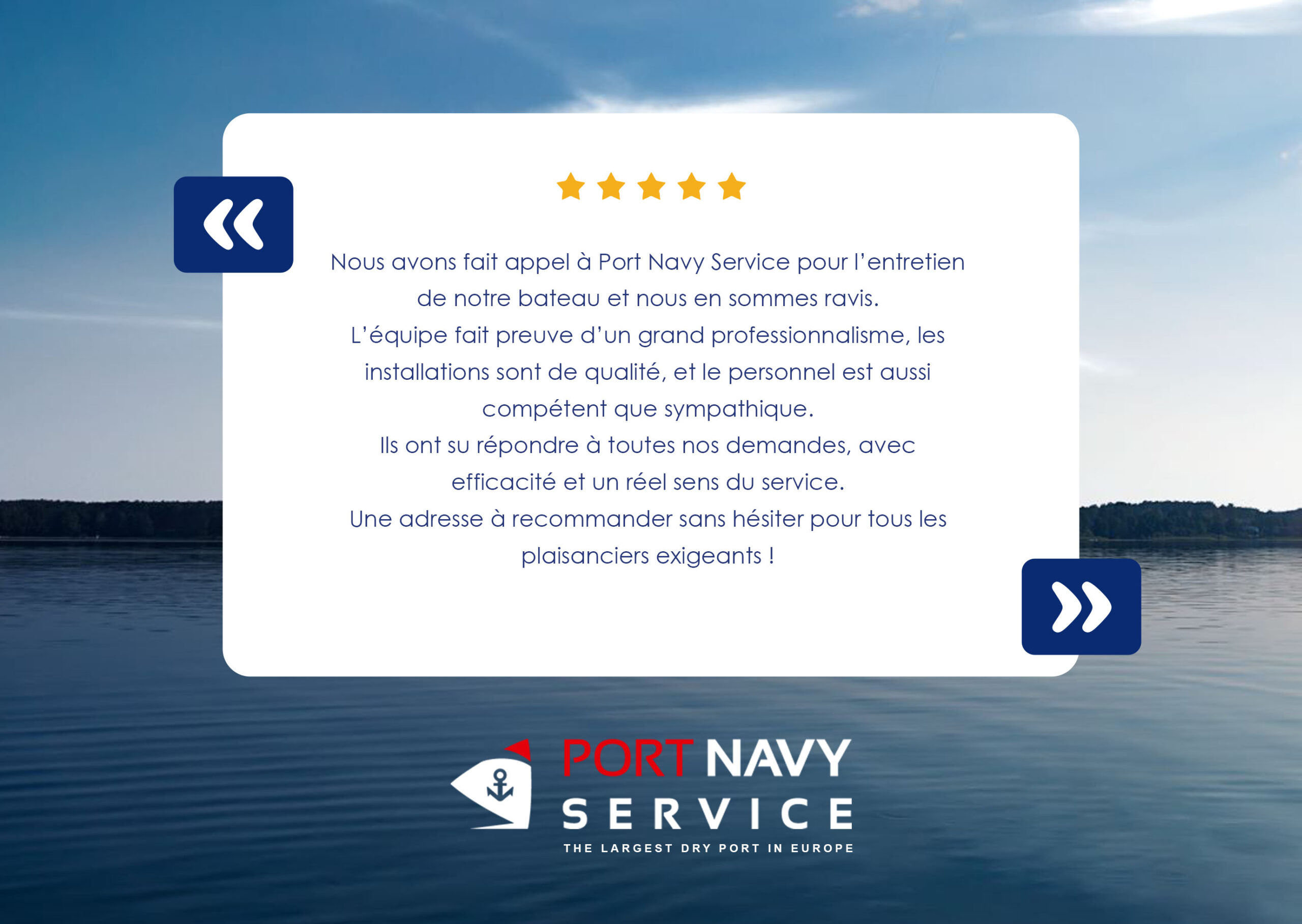 Ces témoignages reflètent ce que nous souhaitons offrir chaque jour : un service fiable et humain, dans un environnement pensé pour le confort et la tranquillité des plaisanciers. Que ce soit pour l’hivernage, la manutention ou un simple passage, Port Navy Service s’attache à offrir un cadre professionnel et chaleureux, où chaque bateau est traité avec soin.